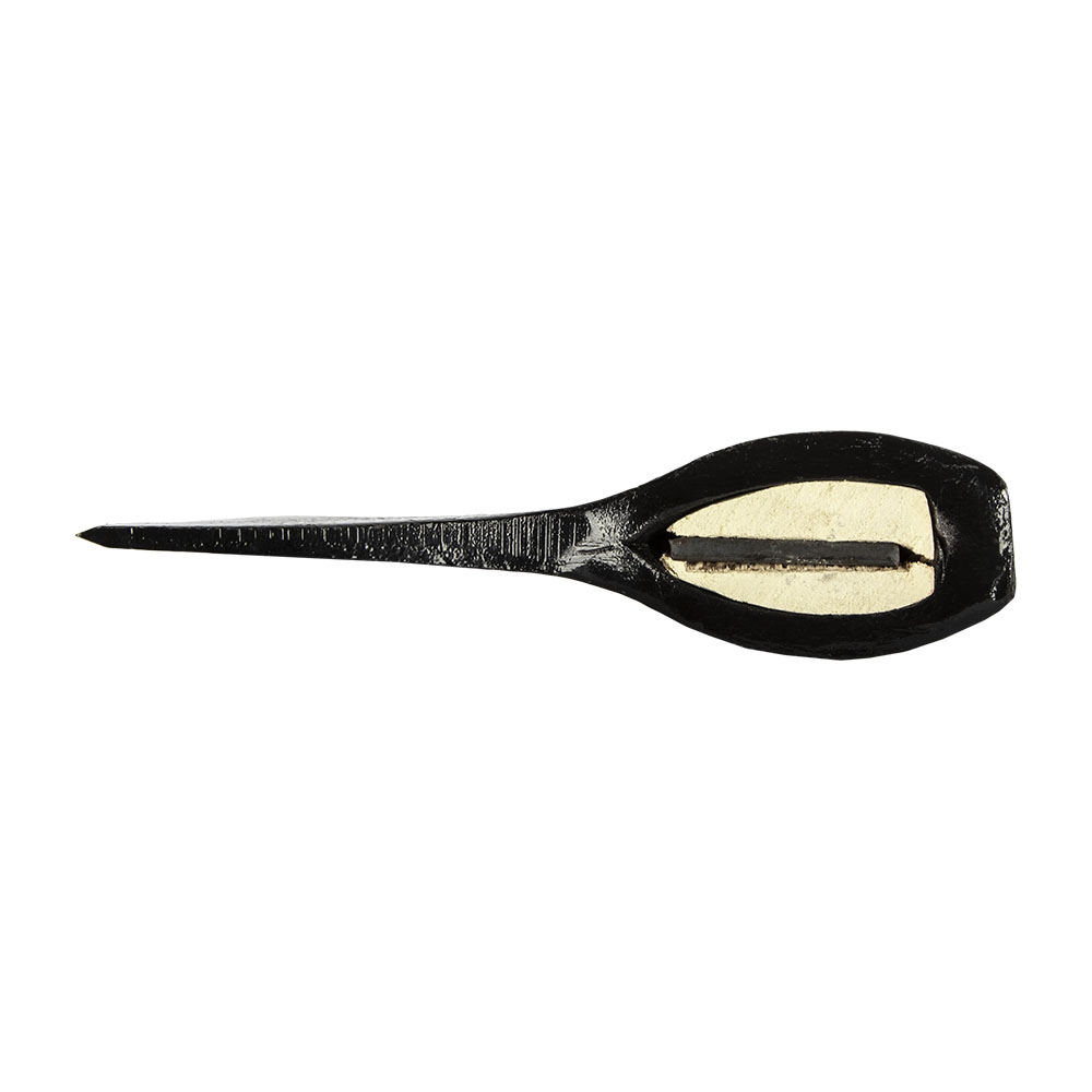 Изготовлен из конструкционной углеродистой кованой стали, твёрдостью 48-56 HRC. Режущая часть покрыта порошковой краской, предотвращающей появление коррозии. Радиусная заточка. Длина лезвия - 140 мм.