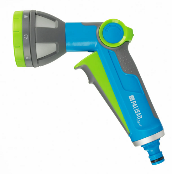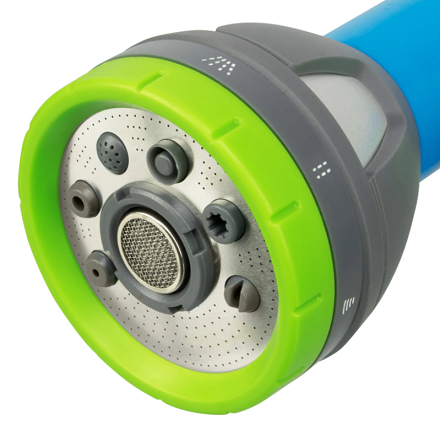 8 типов распыления — конусное, вертикальное и горизонтальное, душ, жесткая струя, веер, туман, полный полив.